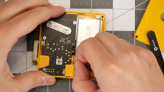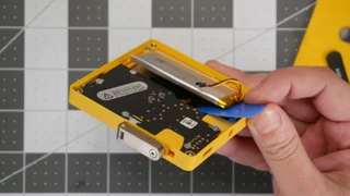 - Use a plastic pick to slowly separate the battery from the mid-frame. Keep the pick as close to parallel with the Playdate as you can, to avoid bending the battery. Take your time.