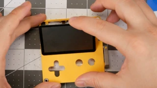 - Place the shell face down on a flat surface and install the face and menu buttons.